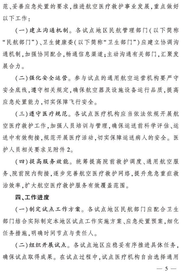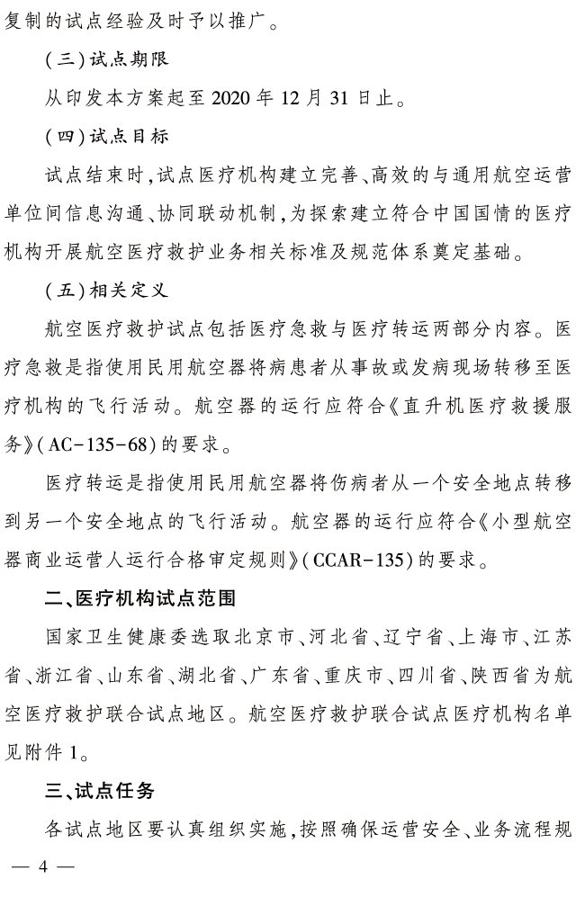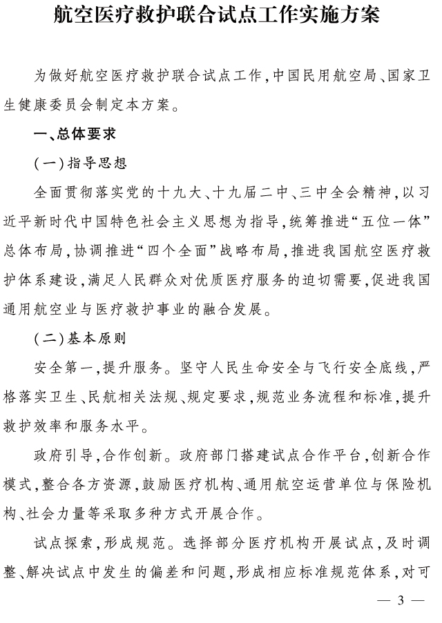 附全文 国民用航空局 国家卫生健康委员会关于印发《航空医疗救护联合试点工作实施方案》的通知