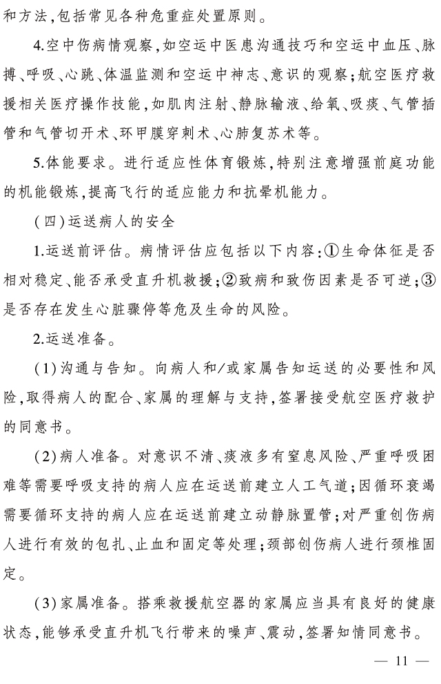 根据航空医疗救护的特殊性,国家卫健委对医护人员、运送过程、配载医疗设备、器械及药品等都提出了具体要求,切实保障运送病人的安全。国家卫健委有关负责人指出,航空医疗救护不是简单的“航空”+“医疗救护”,是两个行业的有机融合和相互提升。国家卫健委要求,各试点地区要统筹院前救护调度,强化院前院内衔接,实现急危重症患者医疗救治快速、高效、高质量。