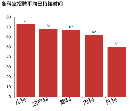 可以看到,儿科岗位平均招聘持续时间是73天,将近2个半月的时间,位居榜首!看来儿科招人难,确实是千真万确的,而外科是最好招人的。
