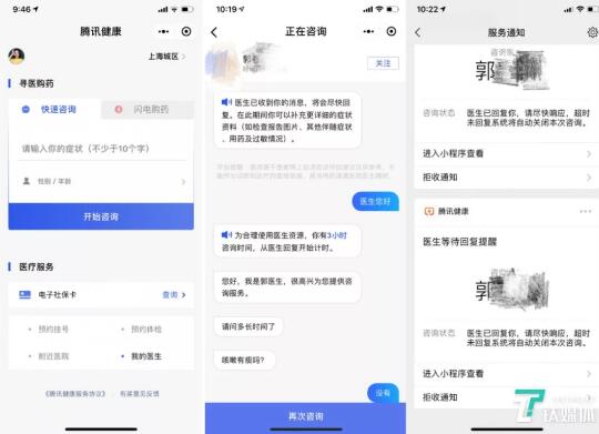 钛媒体(微信ID:taimeiti)在晚上九点左右开始咨询,几分钟之后有医生响应,并提示“为合理使用医生资源,你有3小时咨询时间,从医生回复开始计时。”钛媒体发现,在咨询过程中退出小程序后,医生的回复会通过微信服务通知给用户。