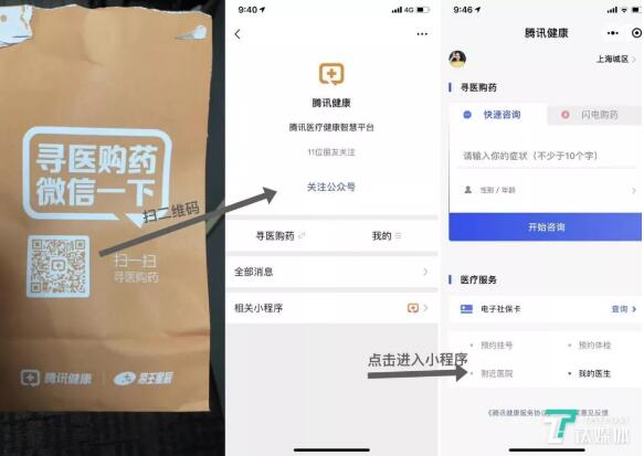 钛媒体(微信ID:taimeiti)了解到,“腾讯健康”小程序目前会提供寻医购药、医疗服务两种,微信用户可以通过三种方式使用该服务: