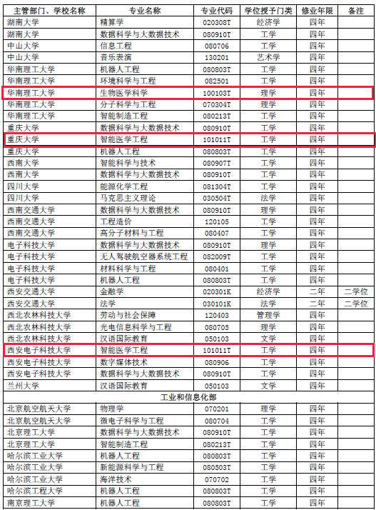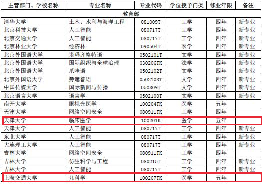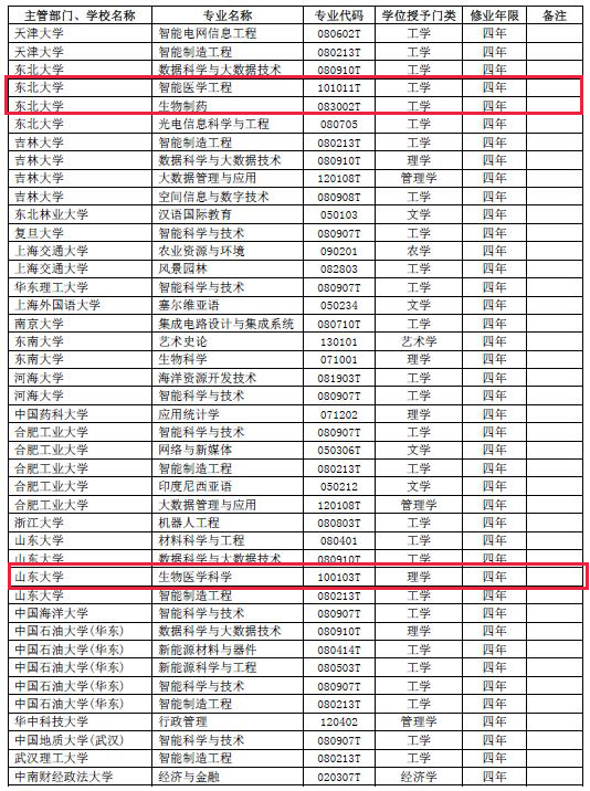 在生物医学领域,虽然有若干所高校的药学类专业被撤销了,但是本次新增备案本科专业和新增审批本科专业名单中,也有不少药学类专业,例如清华大学的药学、南开大学的药物化学、东北大学的生物制药、中央民族大学的中药学等等,同时,还有其他多个生物医学相关类专业出现在新增备案本科专业和新增审批本科专业名单中,以下是具体的新增备案本科专业、新增审批本科专业、以及撤销本科专业名单: