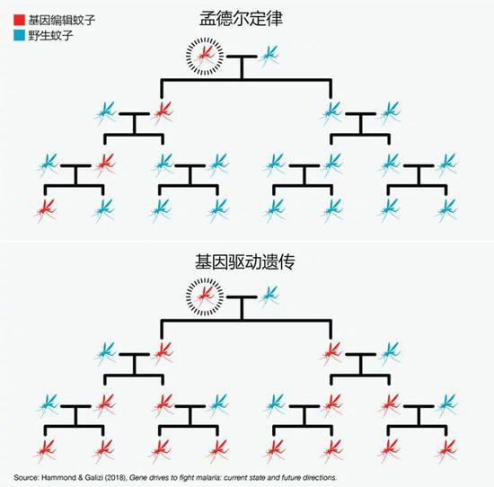 双性基因编辑不会影响雄蚊,虽然在基因驱动的作用下,它们会将基因传递给后代,使得双性基因编辑能在种群中持续传播。