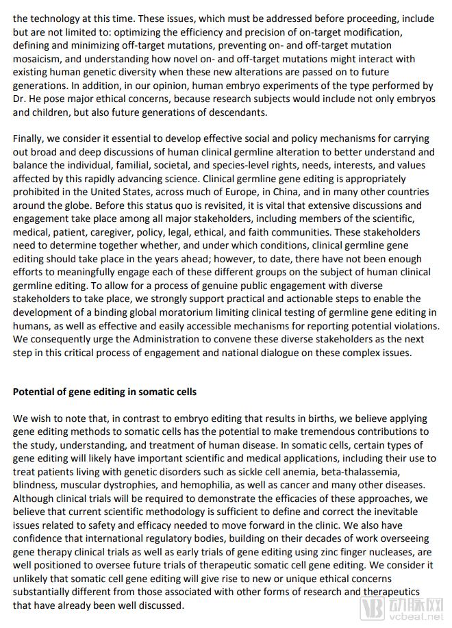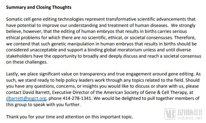 这次联名上书的一共有62位科学家,他们分别是来自科学技术、工业界和生物伦理学的领袖,包括Novo Ventures特别顾问Burt Adelman博士,Editas CSO Charlie Albright博士、CEO Cindy Collins,Tmunity Therapeutics总裁Usman Azam,Broad研究所张锋、David R. Liu,谷歌风投合伙人Anthony Philippakis等。