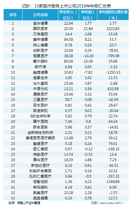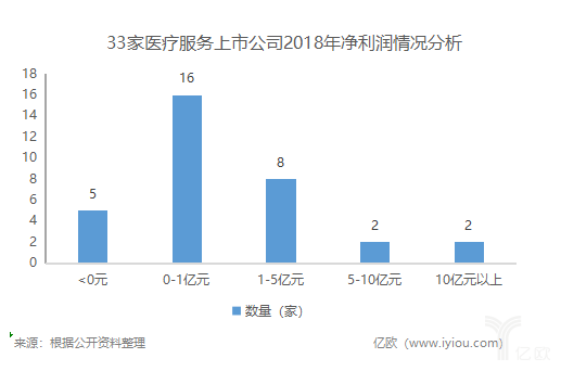 表3:33家医疗服务上市公司2018年净利润情况分析