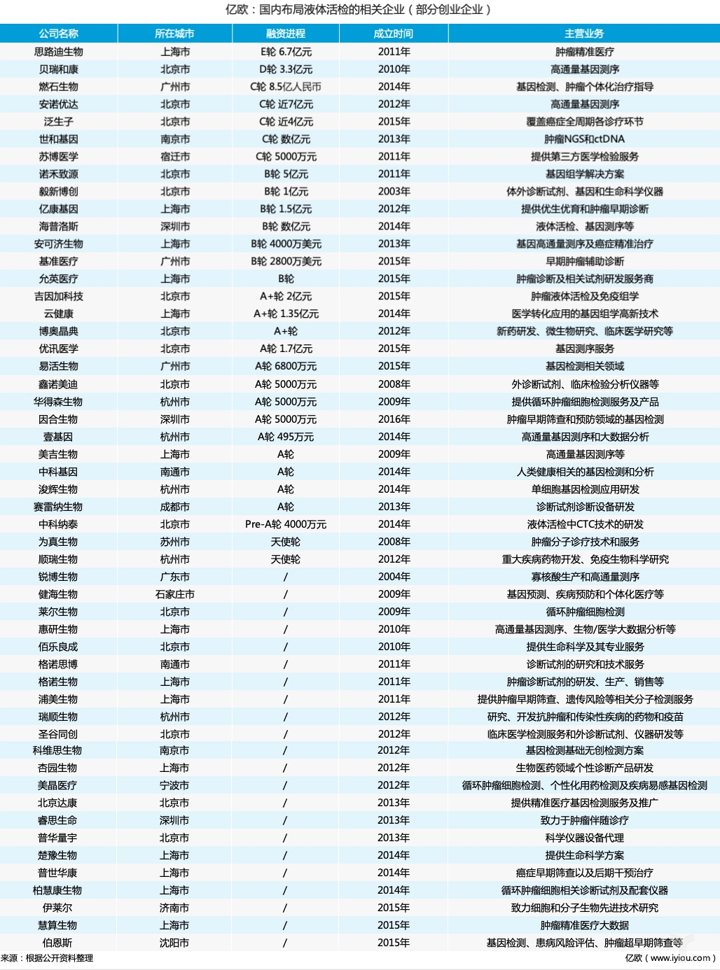另一方面,目前检测技术相对成熟的公司已凭借先发优势与国内大型二三级医院和肿瘤医院建立合作,呈现强者恒强态势,如美年大健康、华大基因等。同时,受资本市场的追捧,相关创业企业亦在逐步崛起,如思路迪生物、贝瑞和康、燃石生物、安诺优达、泛生子等。