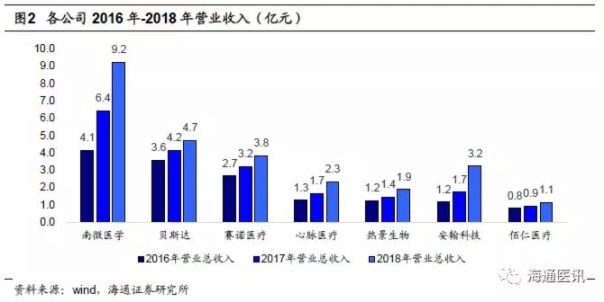 医疗器械是科创板重点发展的领域,此次选取了2019-4-15日及以前在科创板提交招股说明书(申报稿)的7家代表企业:安翰科技、贝斯达、赛诺医疗、南微医学、心脉医疗、热景生物、佰仁医疗,对关键指标做一个比较。