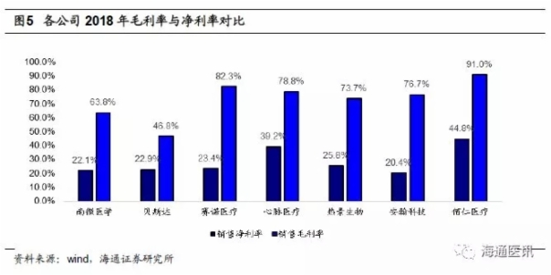 7家公司的净利率均超过了20%,毛利率大多超过70%(其中贝斯达、南微医学毛利率不足70%),其中3家心血管器械公司(佰仁医疗、赛诺医疗、心脉医疗)的毛利率较高。