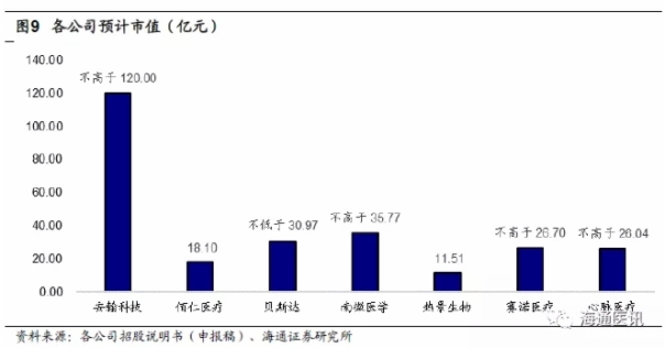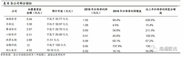 根据各公司拟募集资金金额及其占总股本比例情况,计算得到各公司预计市值如下: