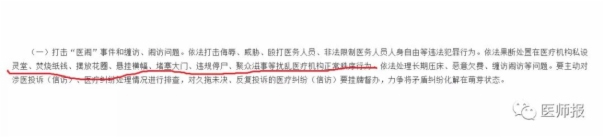 对于病患一方,卫健委严厉打击处理医闹事件,肃清医院治疗环境,保障医护人员人身安全。