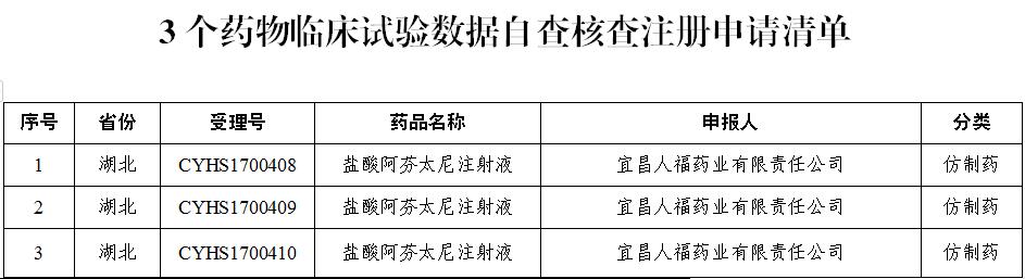 国家药品监督管理局决定对新收到的3个已完成临床试验申报生产的药品注册申请(见附件)进行临床试验数据核查。现将有关事宜公告如下: