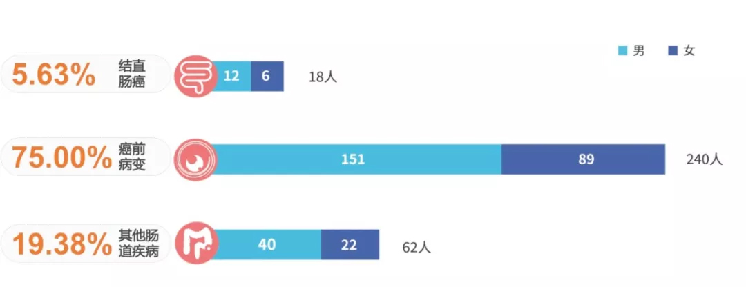 爱康集团创始人、董事长兼CEO张黎刚先生在发布会现场分享的第一个基于分子诊断的《中国体检人群结直肠癌及癌前病变白皮书》显示:在爱康参与常卫清?检测的42,832个样本人群中,阳性人数占比8.93%,随访率为76.39%;在随访的人群中,25.77%人前往医院,并遵循医嘱进行了肠镜检查和/或病理诊断,异常检出率为42.50%,其中结直肠癌5.63%,癌前病变(息肉或腺瘤) 75.00%,其他肠道疾病(肠炎和溃疡) 19.37%。