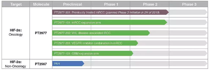 其他的投资案例中,例如 2019 年 2 月 OrbiMed 投资的 Peloton Therapeutics,这家公司的核心资产是缺氧诱导因子 HIF-2α抑制剂 PT2977,PT2977 在试验中被证实对肾细胞癌与 VHL 综合征(罕见病,一种遗传性肿瘤综合征)都具有潜在的治疗价值。
