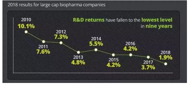 对于药企自身来说,无论布局什么管线,投资回报率是首位的。近十年来,制药公司的投资回报率日益低迷正逐渐困扰着整个行业。