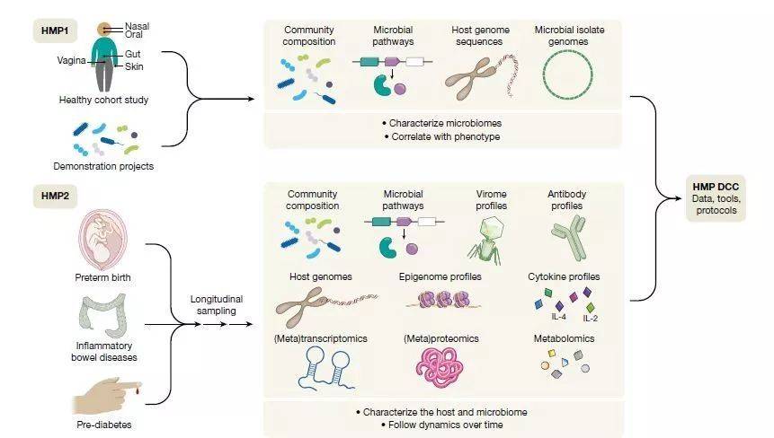 人类微生物组整合计划(iHMP)分两个阶段。(图片来源:Nature)