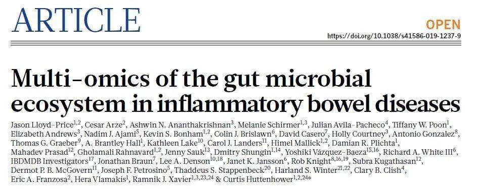 [2] Jason Lloyd-Price et al., (2019) Multi-omics of the gut microbial ecosystem in inflammatory bowel diseases. Nature. Doi: 10.1038/s41586-019-1237-9