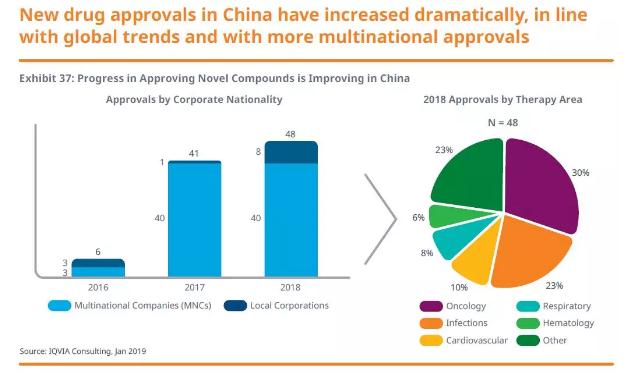 在让中国患者尽早获得新药好药方面,中国监管机构对于新药审评的改革大幅度加快了中国新药批准的速度。在2018年,35款获批药物得益于审评和批准方面的加速政策。其中,lenvatinib的NDA申请接受后9天就获得批准。在2018年,中国监管机构批准了14款新抗癌药物,与发达国家批准的数目相当。在2018年,有8款中国本土医药公司开发的创新药获得批准,达到2006年来最高水平。这些进展意味着中国患者能够以更快的速度获得新药好药。