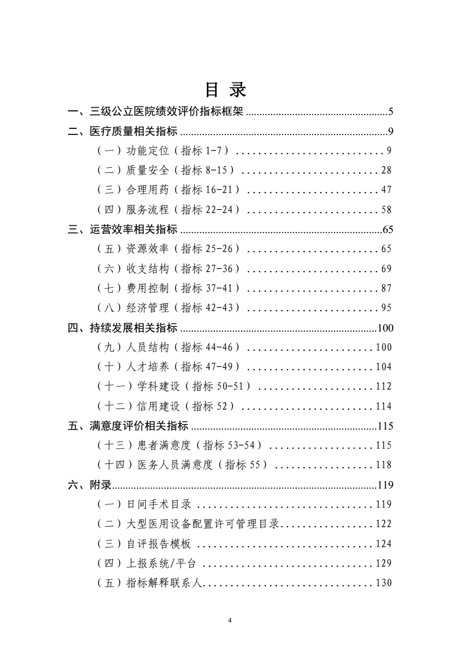 2019版手册包含 4 个一级指标、 14 个二级指标、 55 个三级指标(定量 50 个,定性 5 个),此外三级公立中医医院绩效考核操作手册另行制定印发。