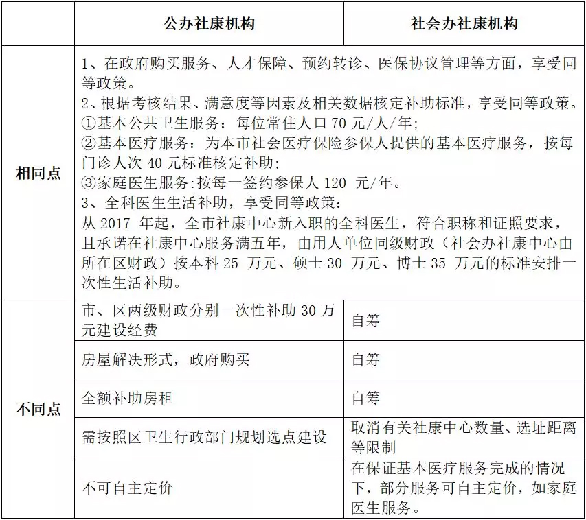 具体的补贴和扶持政策,公立社康和社会办社康差别如下: