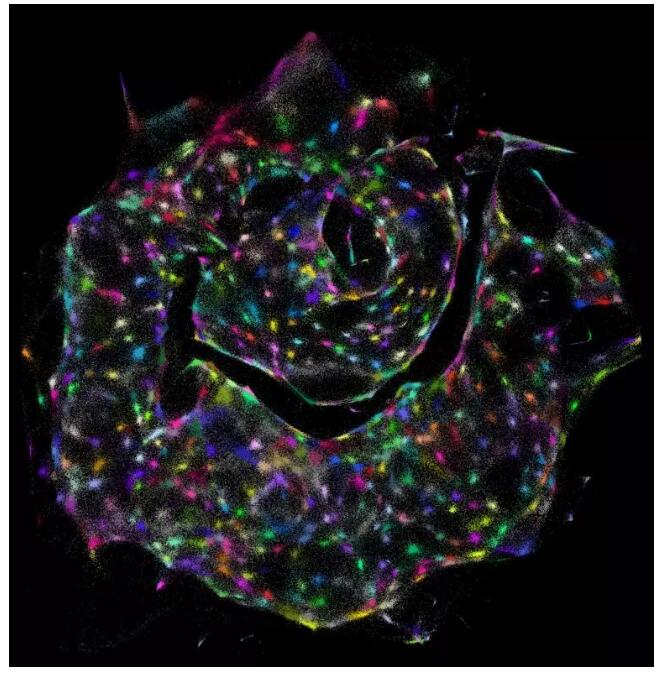 图 | “DNA显微镜”图像,每个点代表一个细胞,颜色表示它们包含的 DNA 序列(来源:BROAD INSTITUTE OF MIT AND HARVARD)