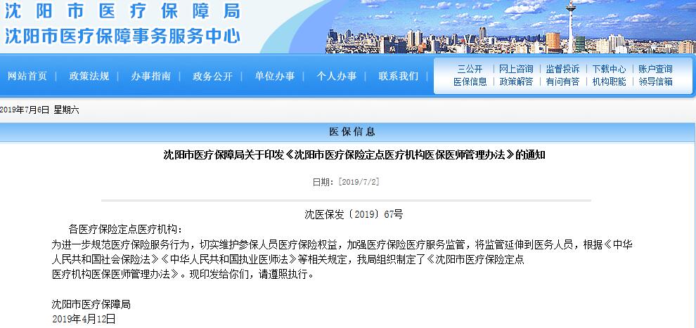 《沈阳市医疗保险定点医疗机构医保医师管理办法》的通知
