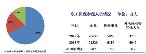 其中,城镇职工参保人数31673万人(在职职工23300万,退休人员8373万);城乡居民参保人数89741万人,新农合参保人数13038万人。