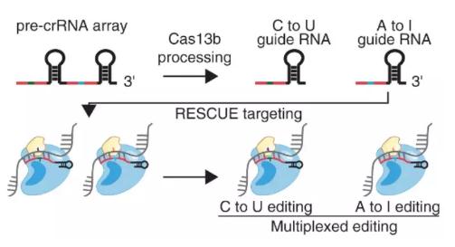 RESCUE (RNAEditing for Specific C to U Exchange),即用于胞嘧啶(C)向尿嘧啶(U)特异性变化的RNA编辑系统,是由张锋教授团队先前开发的REPAIR技术改进而来[2]。