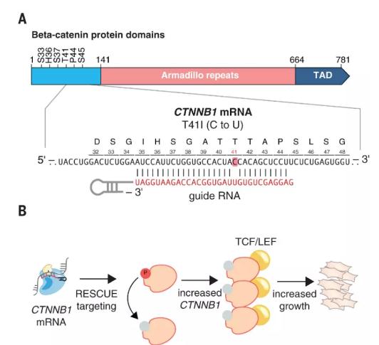 利用RESCUE系统编辑RNA以短期激活β-catenin蛋白,促进细胞生长。图片来源:Science