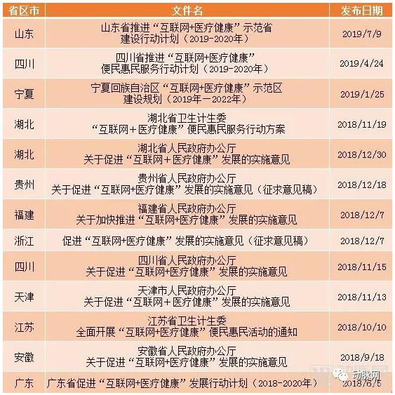 此外,陕西、湖南、河南、重庆等多个省市也已出台促进“互联网+医疗健康”发展的实施意见或行动方案。