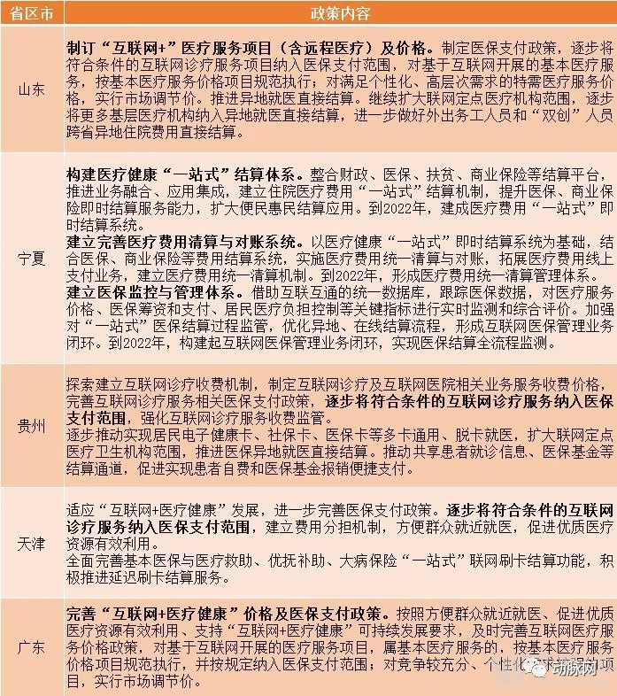 从上述表格可以看出,山东、广东、贵州等省份都提到,将制定互联网医疗的价格政策,也意味着即将走出关键的一步。
