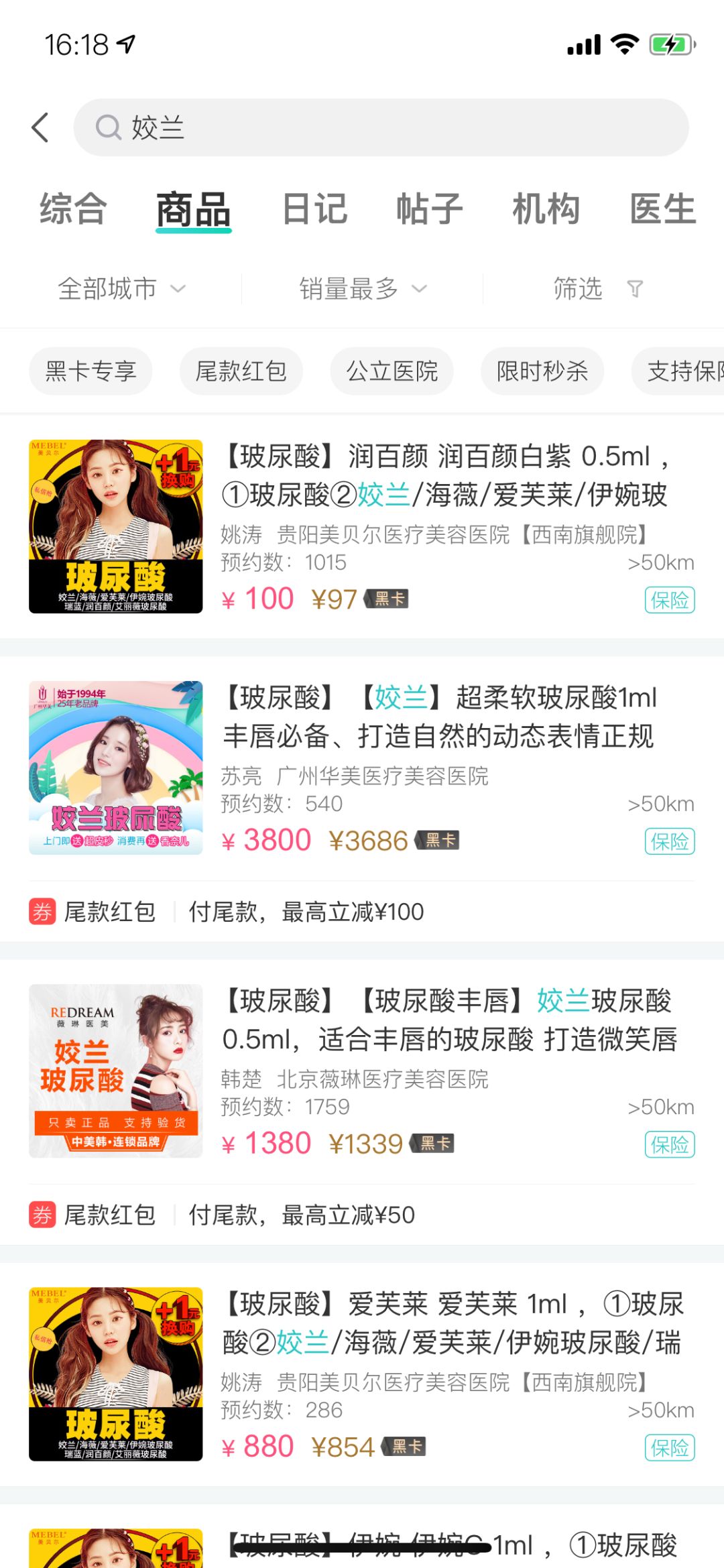 新氧APP中,销量最高的“姣兰”注射项目价格仅为100元
