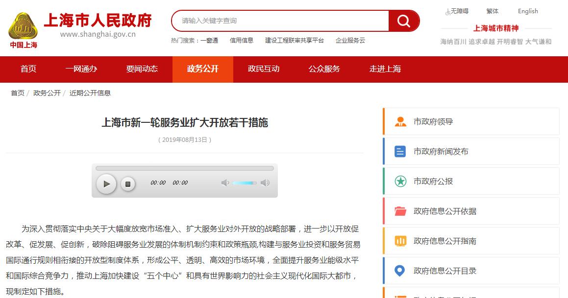 医谷讯:昨日(8月13日),上海市政府发布印发《上海市新一轮服务业扩大开放若干措施》(以下简称若干措施),既提出放宽服务业外资市场的准入限制,减少对外资投资企业开展业务的限制,又提出扩大跨境服务贸易领域开放的措施,减少对自然人移动的限制,还包括了提升贸易便利化服务水平,发展数字贸易、现代航运服务业与金融服务业等开放措施,主要包括七大板块40项内容。