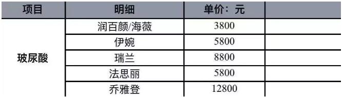 国产品牌润百颜和海薇的单价是3800元/支,进口品牌伊婉、瑞兰、法思丽、乔雅登价格在5800-12800元/支不等。