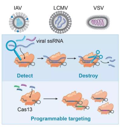 新编程的Cas13在感染了淋巴细胞性脉络膜脑膜炎病毒(LCMV)、甲型流感病毒(IAV)和水泡性口炎病毒(VSV)的人类细胞中进行了实验测试。将Cas13引入样品后24小时,研究人员观察到培养物中病毒RNA的水平降低了40倍。