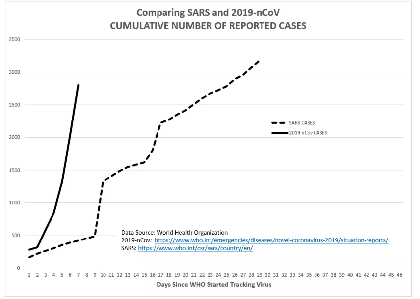 新冠病毒疫情和SARS疫情的发展对比