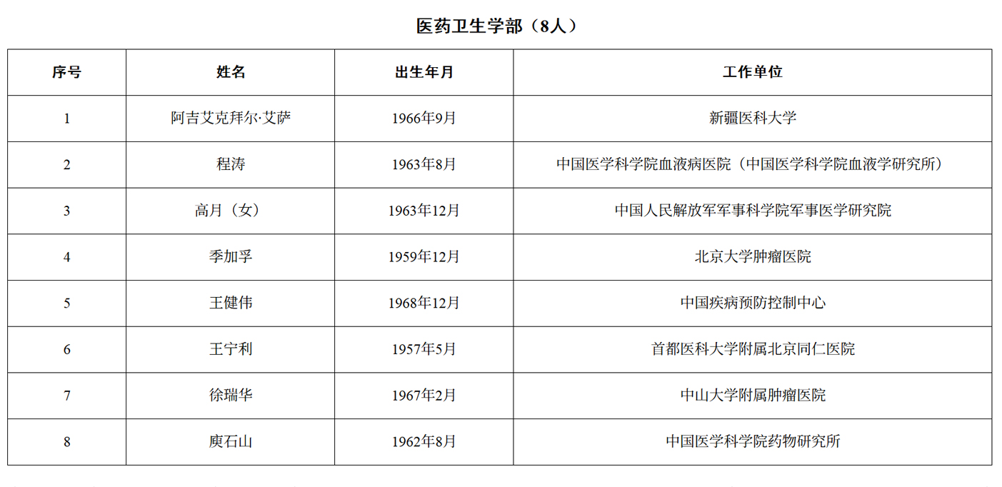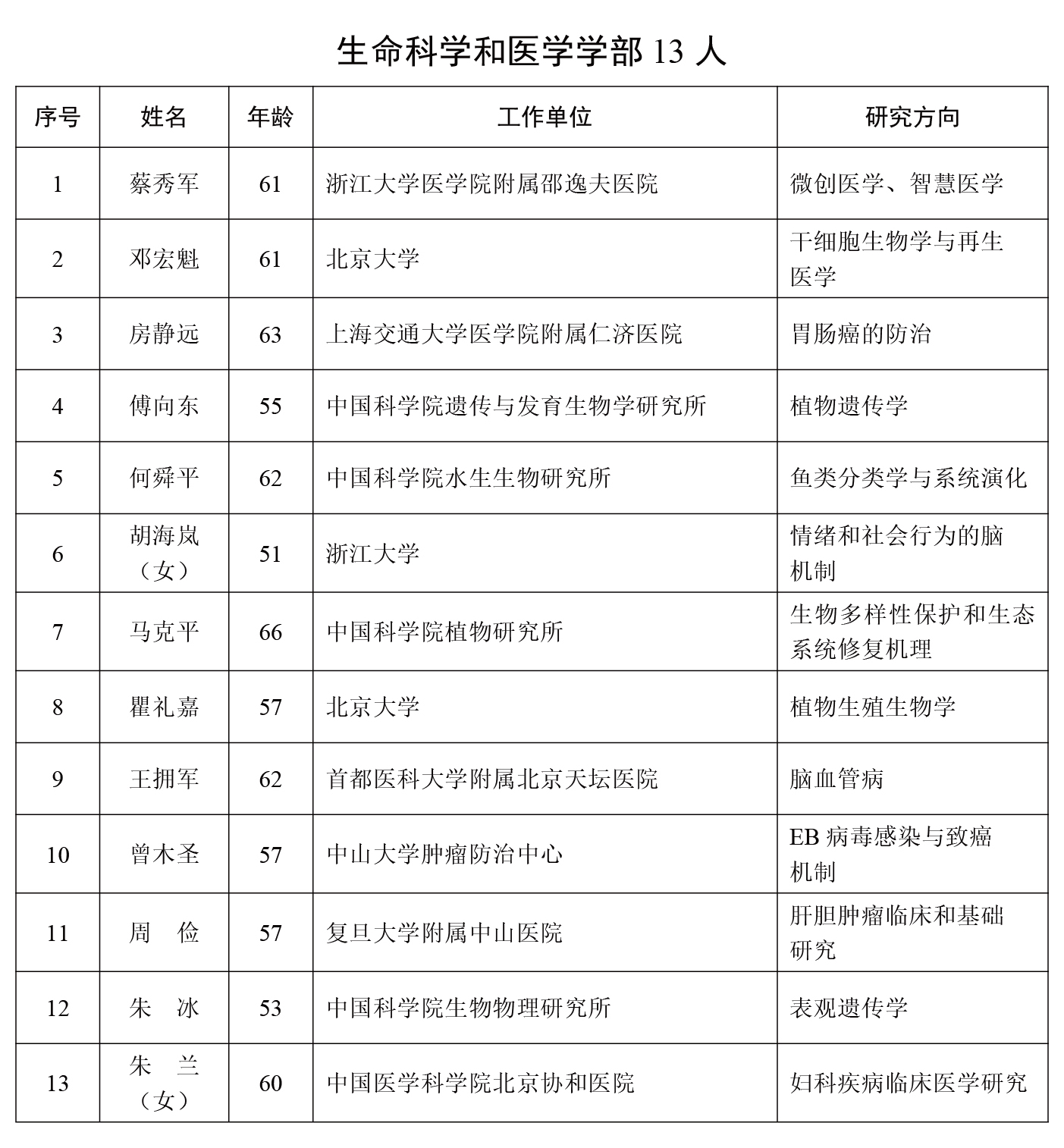 具体到生命科学与医药卫生领域,中国科学院生命科学与医学学部新增13人,中国工程院医药卫生学部新增8人,合计新增21人,占新增院士总数的14.6%。