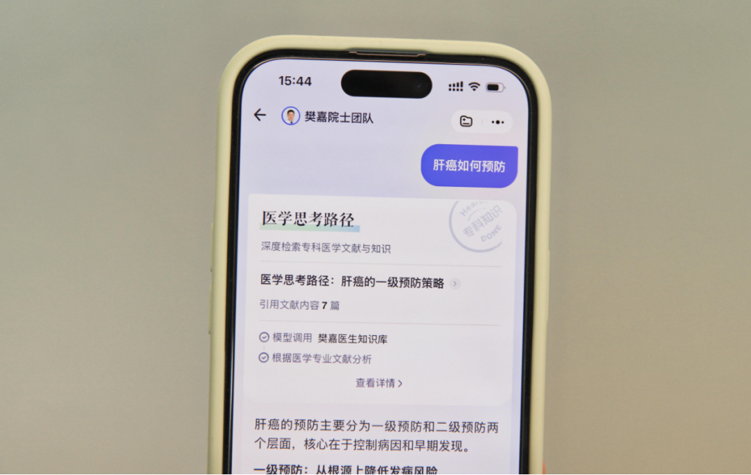 目前,聚焦肝病专科的“樊嘉院士团队智能体”已在蚂蚁阿福App上线,依托樊嘉院士团队审核与指导构建的专科知识库,可向公众提供全天候、个性化的肝病科普、症状初筛等服务,助力患者早筛早诊,让更多人从治病转向防病。