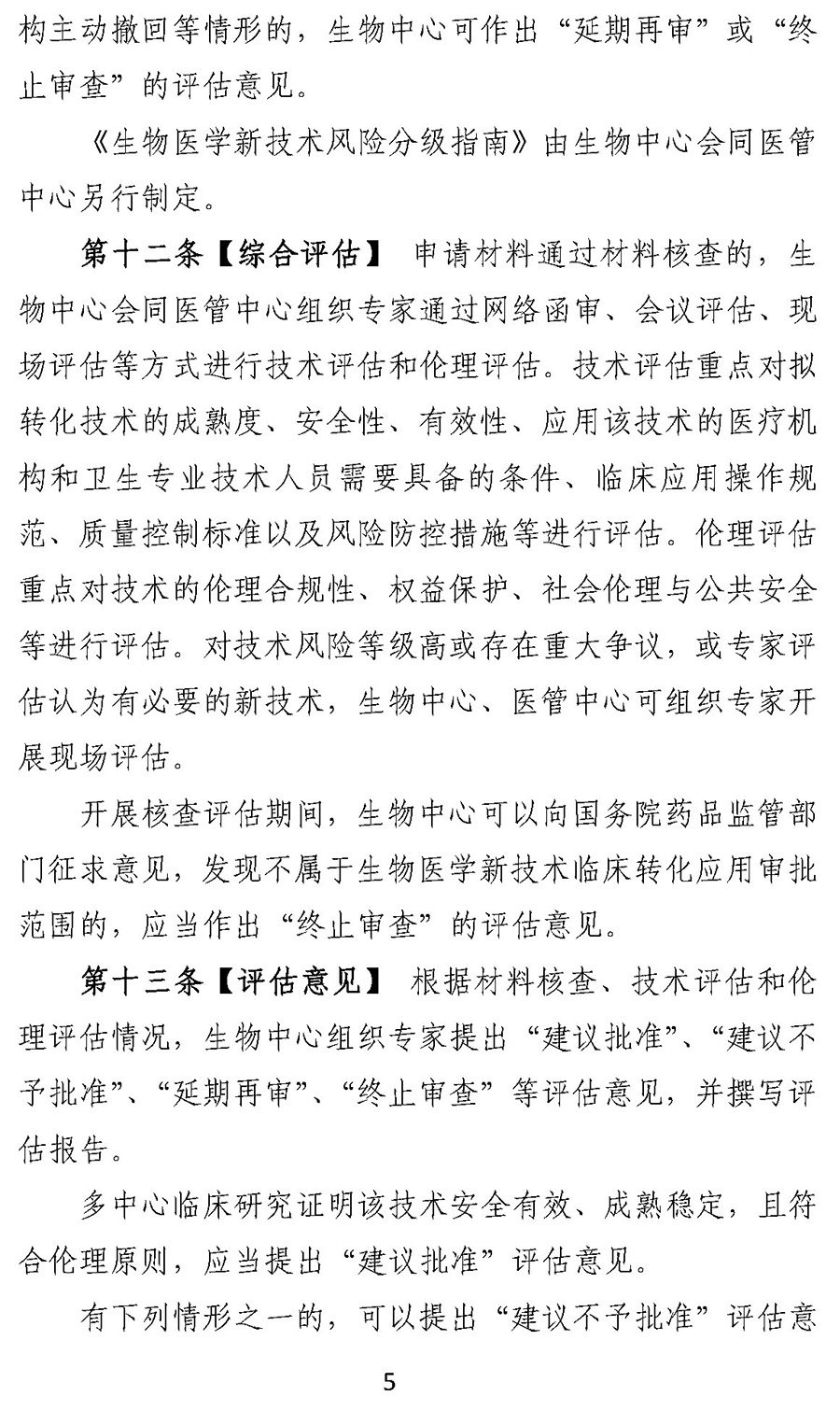 根据材料核查、技术评估和伦理评估情况,生物中心组织专家提出“建议批准”、“建议不予批准”、“延期再审”、“终止审查”等评估意见,并撰写评估报告。