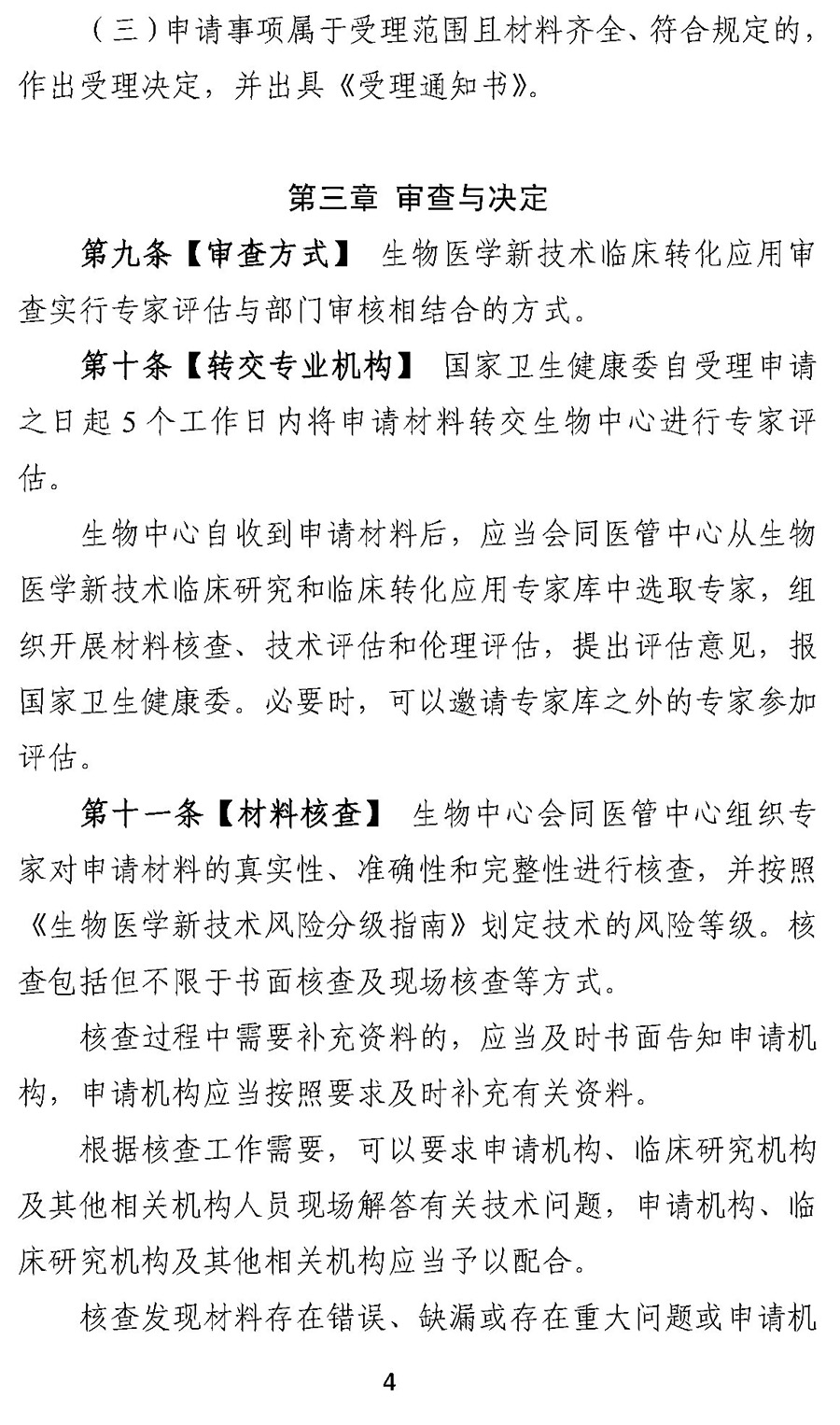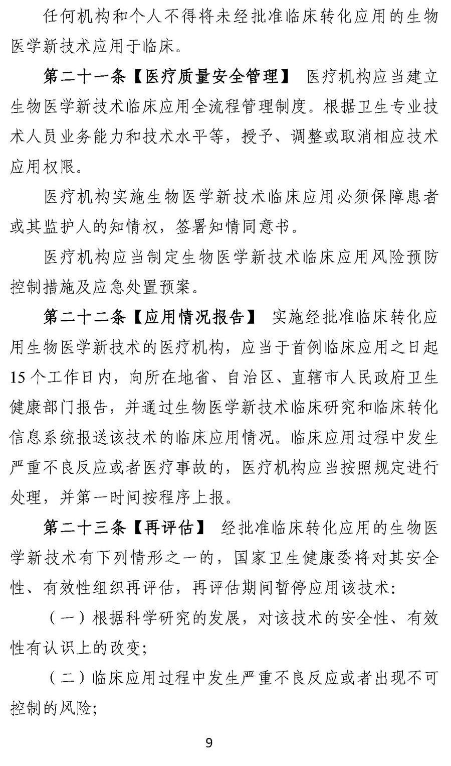 国家卫生健康委医疗管理服务指导中心作为专业机构,承担转化应用后再评估工作,协同配合生物医学新技术临床转化应用的机构和人员资质、临床应用操作规范审查工作。