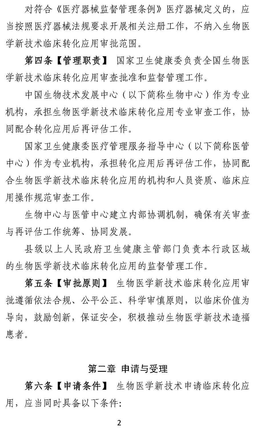 国家卫生健康委负责全国生物医学新技术临床转化应用审查批准和监督管理工作。县级以上人民政府卫生健康主管部门负责本行政区域的生物医学新技术临床转化应用的监督管理工作。