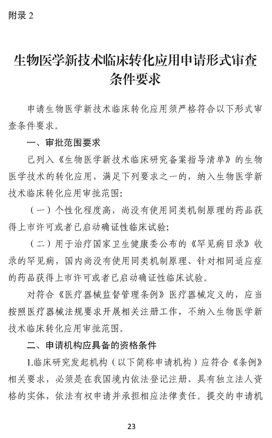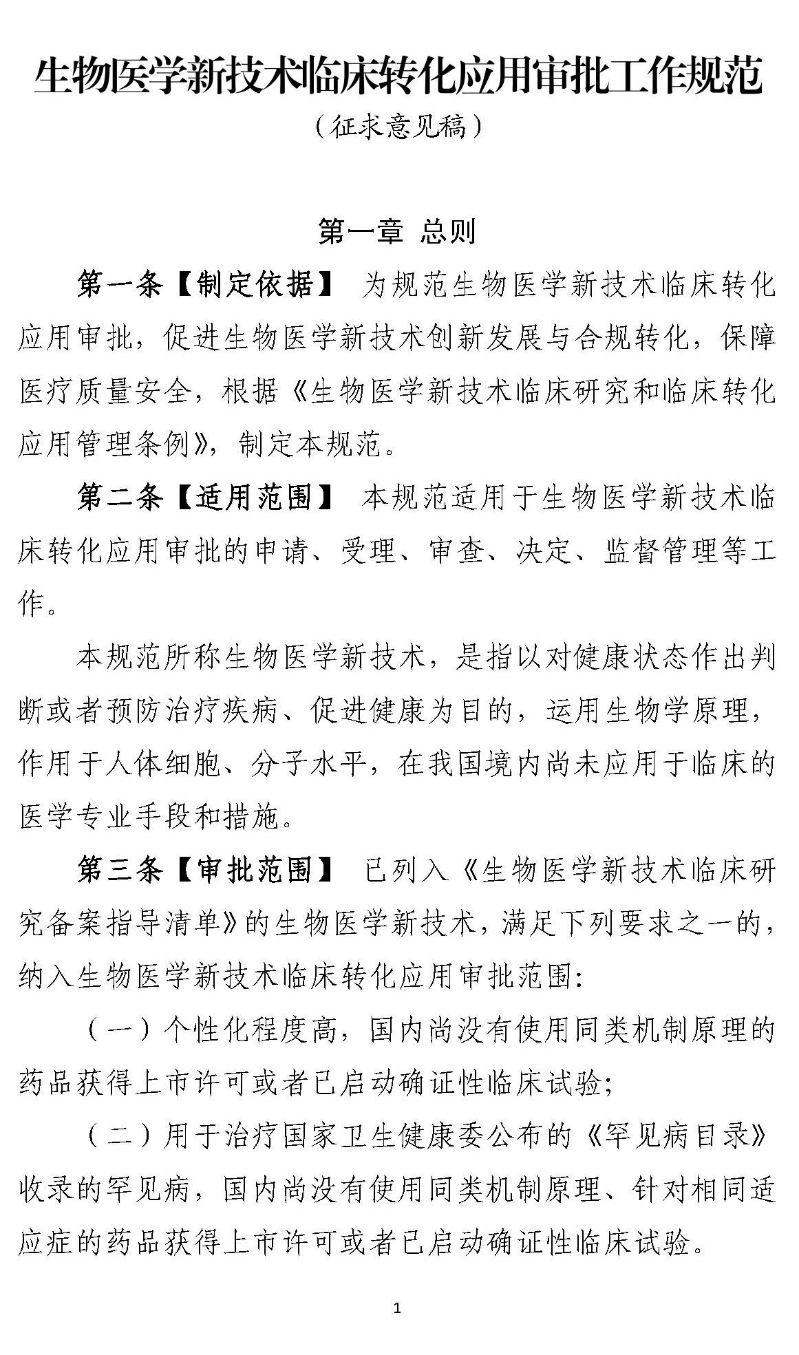 根据征求意见稿第三条,可转化的生物医学新技术为个性化程度高,国内尚没有使用同类机制原理的药品获得上市许可或者已启动确证性临床试验;或用于治疗国家卫生健康委公布的《罕见病目录》收录的罕见病,国内尚没有使用同类机制原理、针对相同适应症的药品获得上市许可或者已启动确证性临床试验。