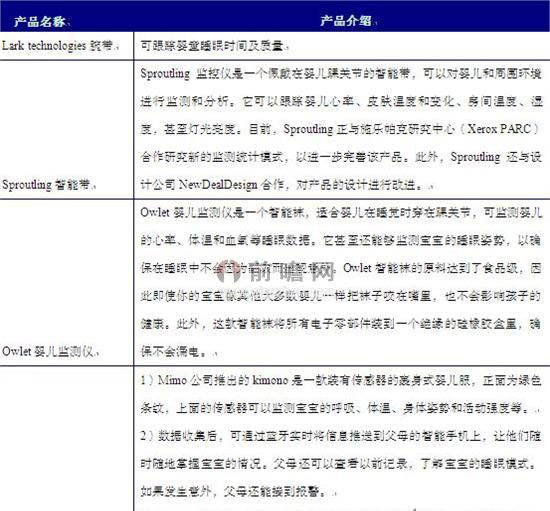 图表3:目前婴童可穿戴便携移动医疗设备主要产品介绍