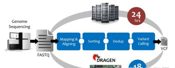 据了解,由Edico Genome开发的Dynamic Read Analysis for Genomics (DRAGEN)生物科技处理器可以说是全球首款新一代测序生物信息特殊应用集成电路(ASIC)。