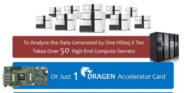 Edico Genome表示,DRAGEN可以将用于分析整个人类基因组所需的24小时锐减至18分钟,同时还保留了大型服务器集群当天分析结果的准确性。