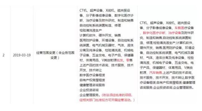 不仅如此,工商关系显示,沈阳东软医疗系统有限公司经营范围新增了车载医疗设备、汽车销售等业务,法定代表人为东软集团董事长刘积仁。