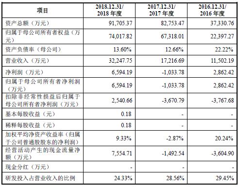 营收业绩方面,招股书显示,安翰科技在2016、2017、2018年三年营收分别为1.15亿元、1.726亿元和3.2247亿元,实现归属净利润2862万元、-1033万元和6594万元。
