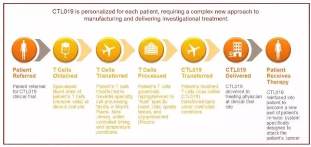 诺华CAR-T细胞疗法CTL019的治疗流程(图片来源:诺华官网)