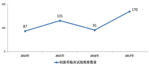 图16 2014年-2017年化药创新药注册申请接收情况(以品种计)