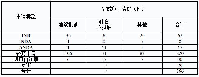 药审中心完成审评的化药NDA 236件,其中审评通过建议批准上市113件。完成审评的化药各类注册申请批准情况详见表1。