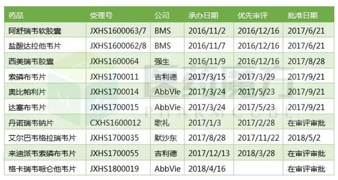 中国获批上市的口服丙肝新药
